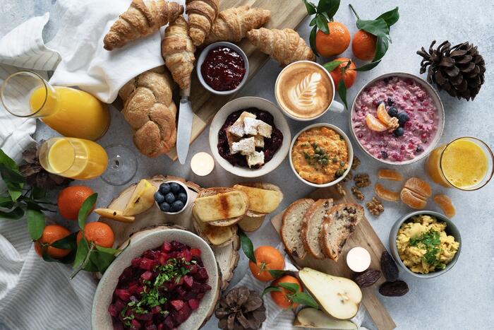 Exklusive festliche Gerichte, ein hübsch dekorierter Tisch und eine kleine Überraschung – im Dezember & Januar verwöhnen wir euch mit unserem genussvollen und weihnachtlichen Brunch. Auf euch warten zahlreiche kulinarische Neuheiten, sowie beliebte Brunch-Favoriten. Lasst euch von unserer saisonalen und weihnachtlichen Auswahl an plantbased Leckerbissen, frischen Säften sowie feinen Tee- und Kaffeespezialitäten rund um die Adventszeit verwöhnen! Auf dem Buffet findet ihr unter anderem folgende Köstlichkeiten: