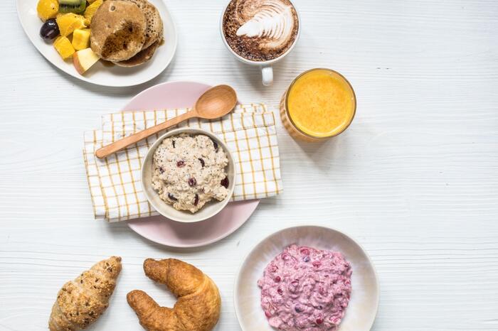 Reichhaltiger Brunch mit vielen köstlichen Bio-Produkten