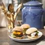 - Die Burger im Brötchen mit Chutney und Salatblättern servieren.