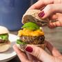 - Die Masse zu Burgern formen, auf ein mit Backpapier belegtes Blech geben und im vorgeheizten Ofen bei 180 Grad mit Umluft 15–20 Minuten backen.