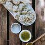 - Für den Teig das Mehl mit dem Salz vermischen und in der Mitte eine Mulde formen. Die Hefe mit 50 ml lauwarmem Wasser und dem Zucker verrühren und in die Mulde geben, mit wenig Mehl vom Rand vermischen. Abgedeckt an einem warmen Ort 15 Minuten gehen lassen.