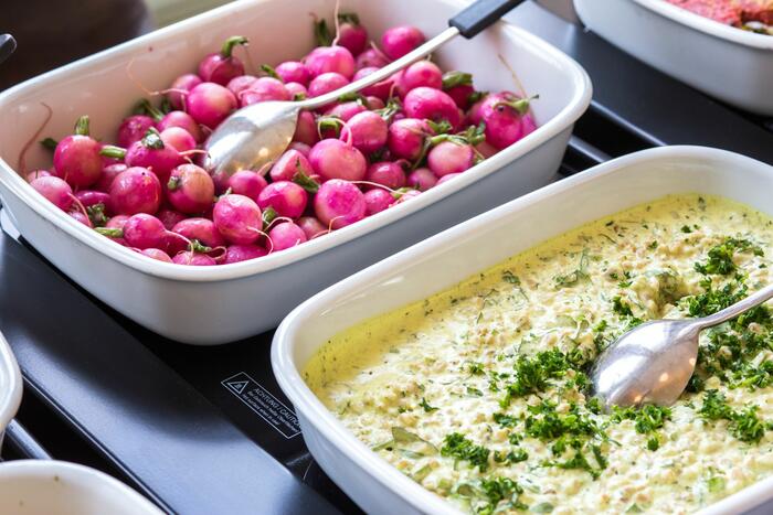 Comme dans nos restaurants, la base du service traiteur tibits est de réunir fraicheur, saveur et variété autour d'un buffet.
