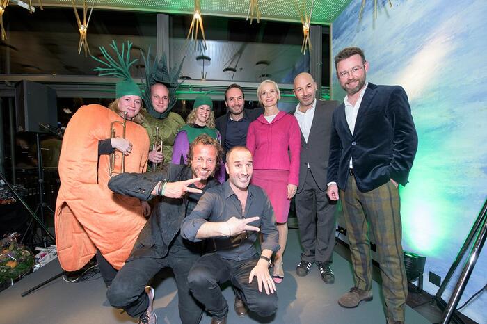 Durch den unterhaltsamen Abend führte der Moderator Nik Hartmann. Die Luzerner Stadträtin Manuela Jost, die selbst überzeugte Vegetarierin ist, hielt eine festliche Ansprache und enthüllte gemeinsam mit den tibits Gründern das neue Food Boat. Wie es sich für eine tibits Eröffnung gehört, wurde danach ausgibig vom Buffet geschlemmt, gelacht und gefeiert.