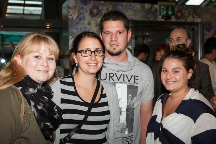 Eine gut gelaunte Gästeschar hat am 11. Juli 2014, zusammen mit den tibits-Gründern Daniel Frei, Christian Frei, Reto Frei und Rolf Hiltl die Eröffnung des Pop-up tibits in Luzern gefeiert.