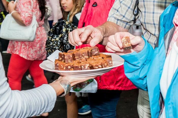 Derweil im Bahnhof mit Brownie Bites für die Reisenden.