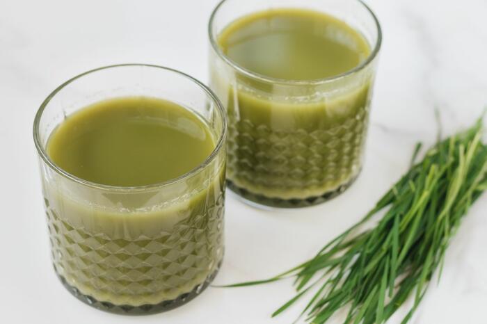 Unseren erfrischenden Green Fitness Saft mit frischem Apfel, Fenchel- und Zitronensaft geniesst ihr ab April mit vitaminreichem Dinkelgras. Dinkelgras zählt zu den ältesten bekannten Getreidesorten und zeichnet sich durch seinen hohen Gehalt an Kalzium, Kalium, Phosphor und Eisen aus. Zudem hilft das enthaltene Chlorophyll beim Sauerstofftransport in den Adern und trägt so zur Bildung neuer Blutzellen und zur Reinigung des Blutes bei.