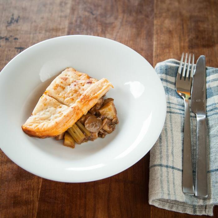 Britischer Ale Pie mit Kartoffeln, Pilzen und Wädibräu Bier. (v)