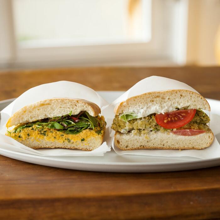 Rüeblimousse Sandwich (v) & Falafel Sandwich