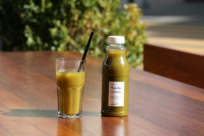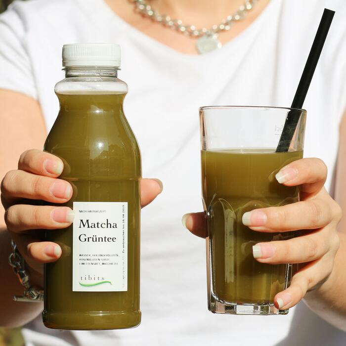 Diesen Frühling haben wir den Matcha Grüntee wieder als unseren Saison-Eistee im Sortiment. Lange nicht mehr nur Hollywoodstars, schwören auf den aufwändig angebauten und zu feinem Pulver zerriebenen, japanischen Grüntee. Das verwundert nicht, denn Matcha trumpft mit vielen gesunden Inhaltsstoffen, wie Vitaminen, Mineralien und Antioxidantien auf. Der natürliche Energiedrink macht nicht nur gleich wach wie ein doppelter Espresso, sondern fördert ausserdem die Konzentration. Neben dem gesunden Matcha Teepulver, enthält unser „Ice Tea“ noch Holunderblüten- und Rosenblütensirup, sowie Limettensaft und Wasser.