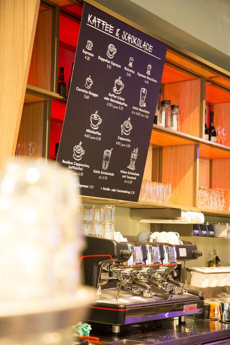 Wir haben uns durch Meret Oppenheims Kunst inspirieren lassen und mit verspielten, skurrilen Materialien einen theatralischen Raum geschaffen, der sich im Verlauf vom Tag zur Nacht verändert. So verwandeln wir das tibits Gundeli am Abend zu einer Bar, wo Bier, Wein, Drinks und leckere Cocktails geschlürft werden können. Dabei bilden die hohen Räume, übergrossen Sitzbänke und Sitznischen auf unterschiedlichen Ebenen das perfekte Ambiente, um das schmackhafte tibits Essen und die Gesellschaft toll geniessen zu können.