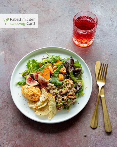 Mit der Swissveg-Card erhaltet ihr im tibits Oerlikon zu eurem Teller ein Getränk nach Wahl* offeriert. Probiert einen unserer erfrischenden, hausgemachten Eistees, geniesst ein lokales Bier oder einen veganen Wein.