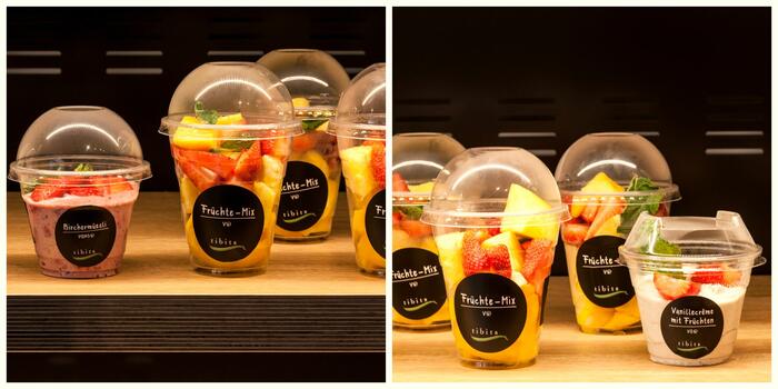 Die Verpackungen in der Take Away Vitrine sind noch einen Tick besser: Sie sind zu 100 Prozent aus nachwachsenden Rohstoffen (stärkehaltigen Pflanzen) hergestellt und lassen sich komplett kompostieren.