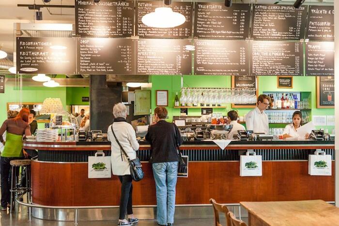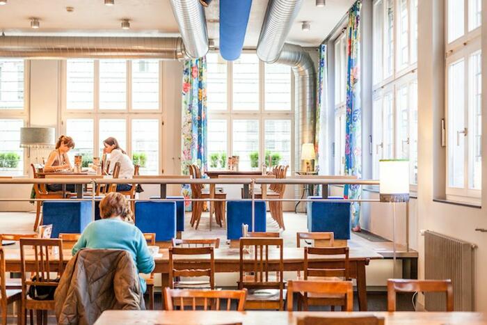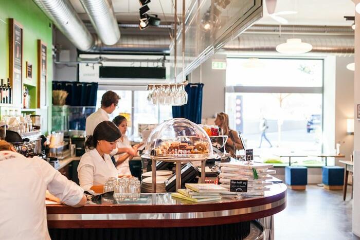 Das tibits Seefeld bistro gleich hinter der Zürcher Oper zum Beispiel, fühlt sich an, wie ein Sommernachmittag in einem Blumengarten. Hier trifft ein Blütenmeer auf 70er-Jahre Charme, laden Sofas und Ohrensessel zum gemütlichen Verweilen ein. Das Blumenzimmer schafft einen der schönsten tibits Durchblicke und bietet Raum für 50 zusätzliche Sitzplätze. Im Durchgang steht ein Trinkbrunnen mit frischem Wasser für alle.