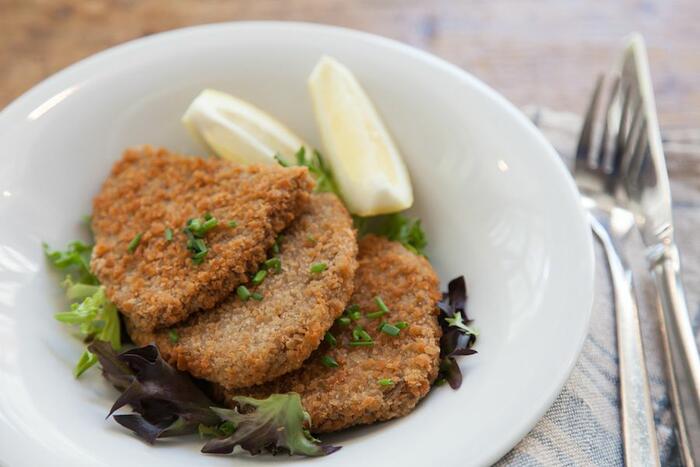 Wer sein Menü lieber etwas heimischer mag, wird bei unserem panierten Schnitzeli fündig. Damit alle unsere Gäste diesen beliebten Klassiker geniessen können, servieren wir ihn vegan. Und wie soll das gehen, fragt ihr euch? Nun, wir haben Seitan und Sojaeiweiss kombiniert, es mit Meersalz, Pfeffer, Senf und Zwiebeln gewürzt, paniert und gebraten. Voilà. Mit etwas frischem Zitronensaft schmeckt es fast wie das Original. Echt lecker!