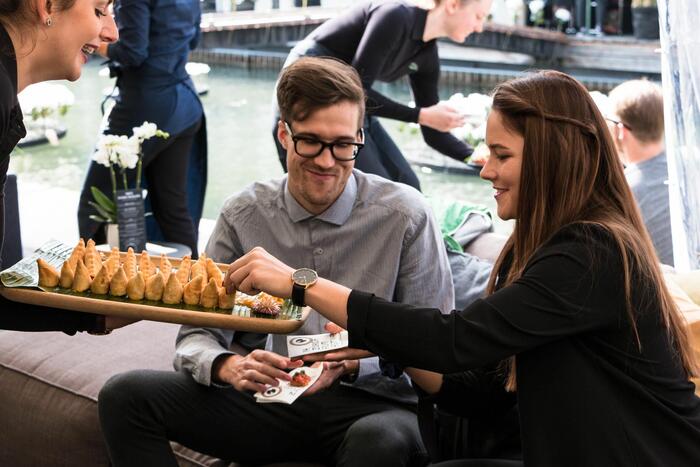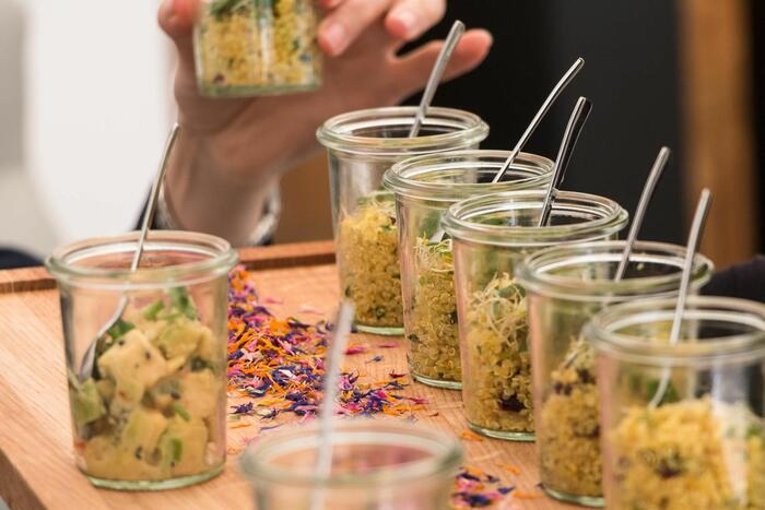Die Sonne zeigte sich an diesem September-Nachmittag noch einmal von ihrer schönsten Seite und belohnte uns mit spätsommerlich-warmem Wetter. Passend zum Wetter zauberte das tibits Event Catering Team Leckerbissen: Knusprige Samosas mit Aprikosen-Ingwer Chutney, verschiedene Salate im Glas, wärmende Gerichte und himmlische Desserts.