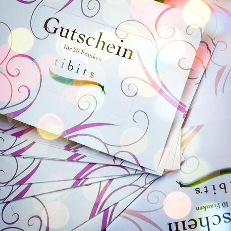 Bei uns gibt es 10.- 20.- und 50.- tibits Gutscheine, die ihr euch nach Belieben zu eurem Wunschbetrag zusammenstellen lassen könnt. Die Gutscheine sind in allen Restaurants oder auch in unserem Onlineshop erhältlich. Dort könnt ihr übrigens noch bis zum 22. Dezember um 12 Uhr eure Last-Minute-Geschenke bestellen, damit sie rechtzeitig ankommen.