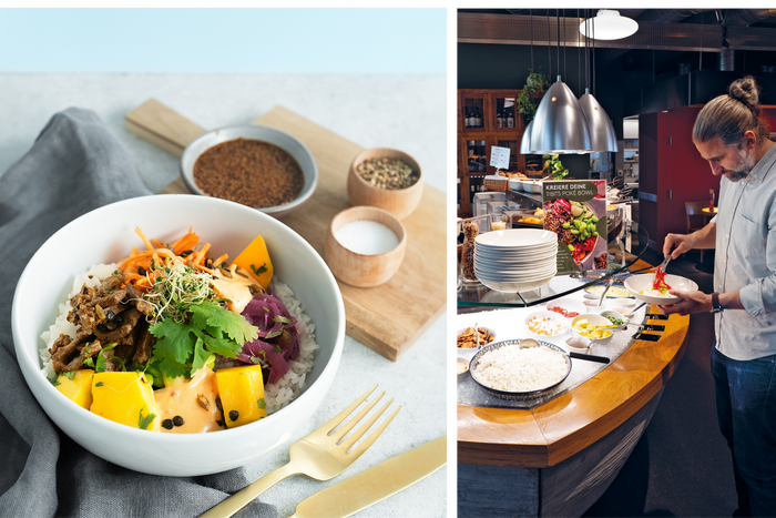 Passend für ein leichtes Sommeressen haben neu unsere bunten Poké-Bowls auf dem Buffet Einzug gehalten. Mit neuem Geschirr kann an der Poké-Station aus bunten Schälchen ein leichtes Gericht nach Belieben zusammengestellt werden. Als Basis dient der mit Aceto Balsamico, Meerrettich und Sesam verfeinerte Poké-Reis. Anschliessend könnt ihr euch bei einer Auswahl an Vitaminen in Form von Rüebli, Edamame, Kimchi, Sprossen und Co. kreativ austoben. Natürlich dürfen die Proteine nicht zu kurz kommen; hier könnt ihr zwischen einem Mix aus gerösteten Belugalinsen und Sonnenblumenkernen sowie fein mariniertem Biertreber auswählen. Verfeinert wird eure individuelle Bowl mit einer der würzigen Poké-Saucen, einer aromareichen Ingwer-Sesam-Saya-Sauce oder unserer Sririacha-Mayo. So verleiht ihr euren geschöpften Zutaten eine aufregende und individuelle Note. Wählt zur geschmacklichen Abrundung abschliessend euer Lieblingstopping aus: Kokos-Chips, Sesam, tibits Nussmischung, Cashews, Petersilie oder Koriander. Viel frisches Gemüse auf duftendem Reis – so lässt sich auch die grösste Sommerhitze gut überstehen.