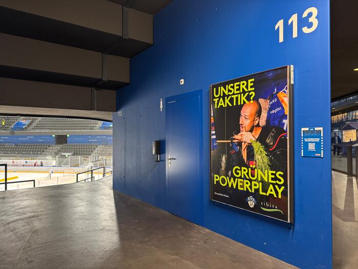 Die Kampagne «Grünes Powerplay» in der BOSSARD Arena und der Zuger Innenstadt mit Plakaten sichtbar. Spieler:innen wie Lena-Marie Lutz oder Captain Jan Kovář setzen mit humorvollen Visuals ein Zeichen für die Wichtigkeit einer bewussten Ernährung für Spitzenperformance.