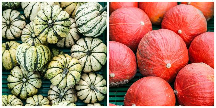 Piena di Napoli haben eine ähnliche Form wie Butternüsse, sind jedoch grün gesprenkelt. Sie sind gut lagerbar und eignen sich für alle Arten von Gerichten.