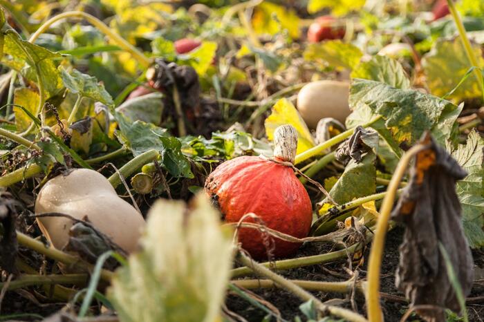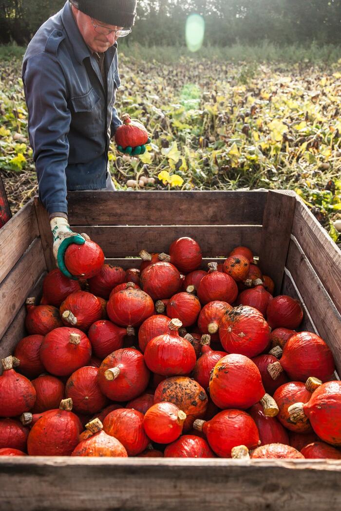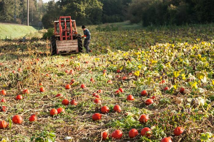 Klaus Böhler's Kürbisfeld in Seuzach bei Winterthur ist eine richtiggehende Halloweenparty. Da tummeln sich Sweet Dumplings und Butternüsse, leuchten rote Knirpse und verstecken sich grüne Hokkaidos zwischen Kürbisblättern und wildem Gewächs. Auf dem nach Demeter-Richtlinien bewirtschafteten Feld ko-existieren Nutzpflanzen und "Unkraut" oder "Beikraut", wie Böhler es nennt, entspannt nebeneinander.