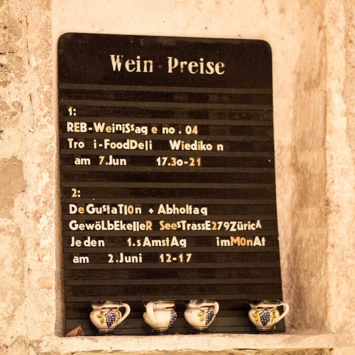 Es ist kühl im Gewöbekeller, durch ein Kellerfenster dringt etwas Licht. Auf dem grossen alten Holztisch in der Mitte des Raums, stehen Flaschen, zwei Spuckbecher und ein paar Korken. Wir befinden uns in Rebweins Weinkeller in Wollishofen.