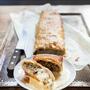 - Den Blätterteig ausrollen, die Masse reingeben und einrollen.