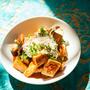 - In der Zwischenzeit das Paneer oder die Tofuwürfel in ca. 1.5 cm grosse Würfel schneiden. In einer Bratpfanne mit dem Kokosfett auf hoher Hitze anbraten, bis die Würfel goldbraun sind.