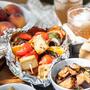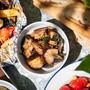 - Die Auberginen waschen und in 2cm grosse Würfel schneiden und in einer Schüssel mit dem Öl vermengen.