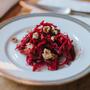 - Den fermentierte Rotkabis gut abtropfen lassen und leicht auspressen.