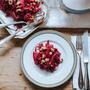 - Für die Sauce Preiselbeer-Konfitüre, Balsamico und Öl vermischen und zum Salat geben. Mit Salz und Pfeffer aus der Mühle abschmecken.
