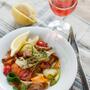 - Die Papardelle in kochendem Salzwasser nach Packungsbeilage al dente kochen. Derweil die Karotten rüsten und sie, wie auch die Zucchetti mit dem Sparschäler in „Papardelle“-Streifen schneiden.