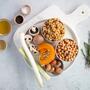 - Gemüse mit den Kichererbsen, Rosmarin und Olivenöl in eine Schüssel geben, mit Salz und Pfeffer vermischen und auf ein mit Backpapier belegtes Backblech geben. Anschliessend im Ofen bei 180 Grad ca. 10-15 min. backen.