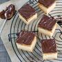 - Die Marmelade auf den Boden streichen und die noch warme vermischte Kuvertüre daraufgeben und auskühlen lassen.