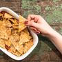 - Die Nachos von Hand ein wenig zerbröckeln und über das Gemüse verteilen.