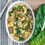 - In der Zwischenzeit das Tempeh in kleine Würfel schneiden, mit Sambal Oelek vermischen und in einer Bratpfanne stark anbraten.