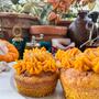 - Die ausgekühlten Cupcakes mit einem Messer aus der Form trennen. Den Spritzsack mit dem Kürbistopping füllen. Die Cupcakes beliebig mit dem Topping dekorieren. Etwas Zimtzucker über die Cupcakes geben.