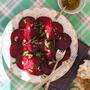 - Die Sauce gleichmässig über die Randenscheiben verteilen und zugedeckt eine halbe Stunde (oder bis der Rest der Mahlzeit fertig gekocht ist) in einer kühlen Ecke stehen lassen.