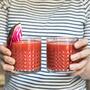 - Karotten und Randen waschen, schälen, durch die Saftpresse lassen und mit dem Bananensaft mischen.