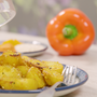 - Die Kartoffeln waschen und halbieren. Sesamsamen, Curcuma, Rapsöl, Paprika, Knoblauch, Salz und Cayennepfeffer in einer Schüssel gut vermischen, die Kartoffeln dazugeben nochmals gut durchmischen.