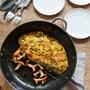 - Den Tofumix in die leer gewordene Bratpfanne geben und bei mittlerer Hitze (Achtung: nicht zu hoch, sonst brennt die Omelette an) ca. 5-6 Minuten anbraten. Nach 3-4 Minuten, wenn die Masse fest geworden ist, die Omelette wenden und auf der zweiten Seite ebenfalls schön goldbraun braten.