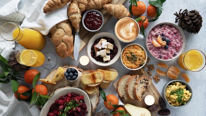 Plats festifs exclusifs, table joliment décorée et une petite surprise - en décembre et début janvier, nous nous réjouissons de vous faire découvrir nos brunchs festifs gourmands. De nombreuses nouveautés culinaires exclusives à déguster uniquement aux dates sélectionnées, ainsi que les plats les plus appréciés de nos brunchs vous attendent. Sur le buffet, vous trouverez notamment les délices suivants :
