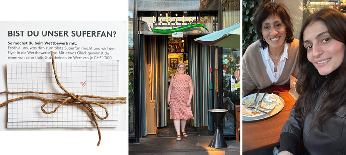 Miriam nous a envoyé son histoire écrite à la main, sur une jolie carte. Depuis son arrivée à Zurich, tibits est pour elle un lieu pour se ressourcer, discuter et vivre des moments uniques. Elle aime son atmosphère ouverte, sa chaleur humaine et sa diversité, un vrai petit coin de chez soi au cœur d’une ville nouvelle.