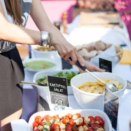 CONSEIL : Notre fonctionnement sous forme de buffet est adapté aux groupes dès 12-15 personnes jusqu'à 100 personnes environ. Nous vous conseillons volontiers sur les quantités à commander. A titre indicatif, pour les commandes de 15 personnes nous recommandons environ 2 variétés de salades, 1 à 2 variations de snacks chauds & 2 à 3 plats chauds que nous vous conseillons selon l'offre du jour de votre commande.