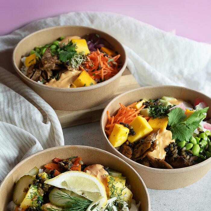 Les poké bowls tibits sont également disponibles à l'emporter au tibits take away pop-up, situé à l'entrée Est de la gare de Lausanne.