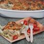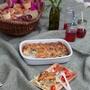 - Mélangez bien tous les ingrédients pour la base dans un bol, assaisonnez avec du sel, du poivre et de la noix de muscade et versez sur les légumes.