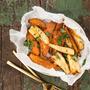 - Hacher finement la coriandre et la verser sur les panais et les patates douces.