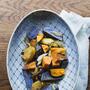 - Mélangez bien les ingrédients de la marinade dans un autre bol, ajoutez-les aux pommes de terre et placez-les sur une plaque de cuisson recouverte de papier sulfurisé. Faites ensuite cuire pendant 15-20 minutes environ et dressez.
